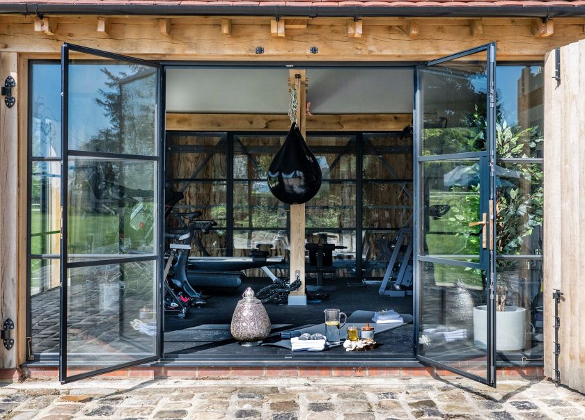 The clients needed the new building to complement the surrounding countryside. To honour the property’s history, they wished to integrate the statuesque doors from the original barn into their new project.