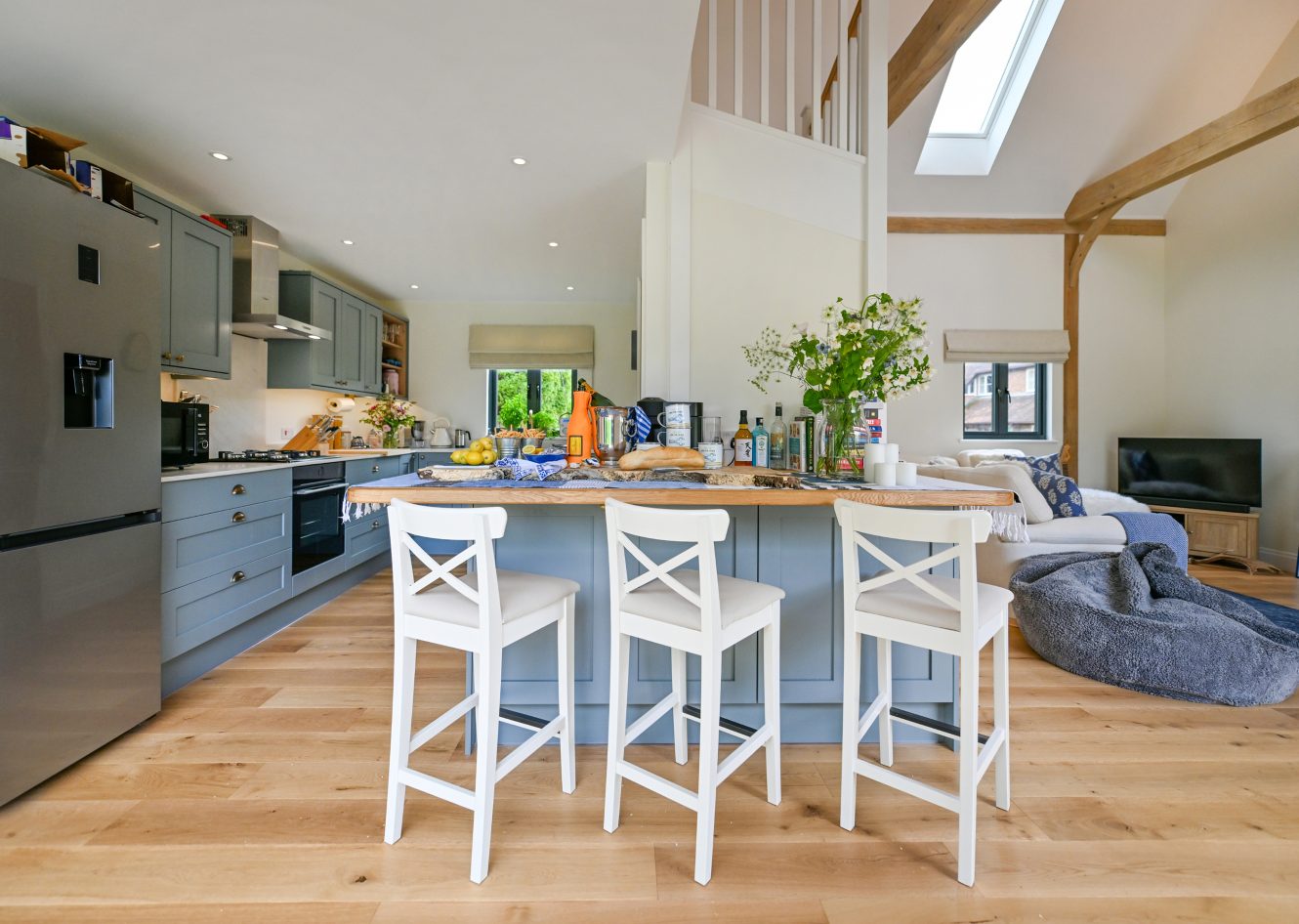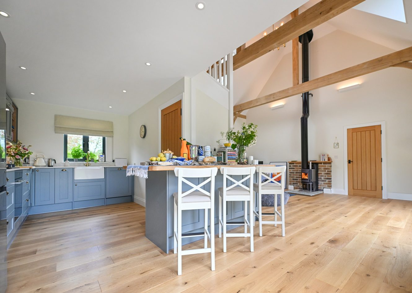 The interior of your oak-framed building can be as unique as you wish. Oak-framed buildings are as suited to snug bolt holes, bedecked with cosy rugs and a roaring wood-burning stove, as they are to light and airy spaces that mirror the view into your garden and beyond. Our interiors service is available to help you bring your vision perfectly to life with expert guidance and implementation.